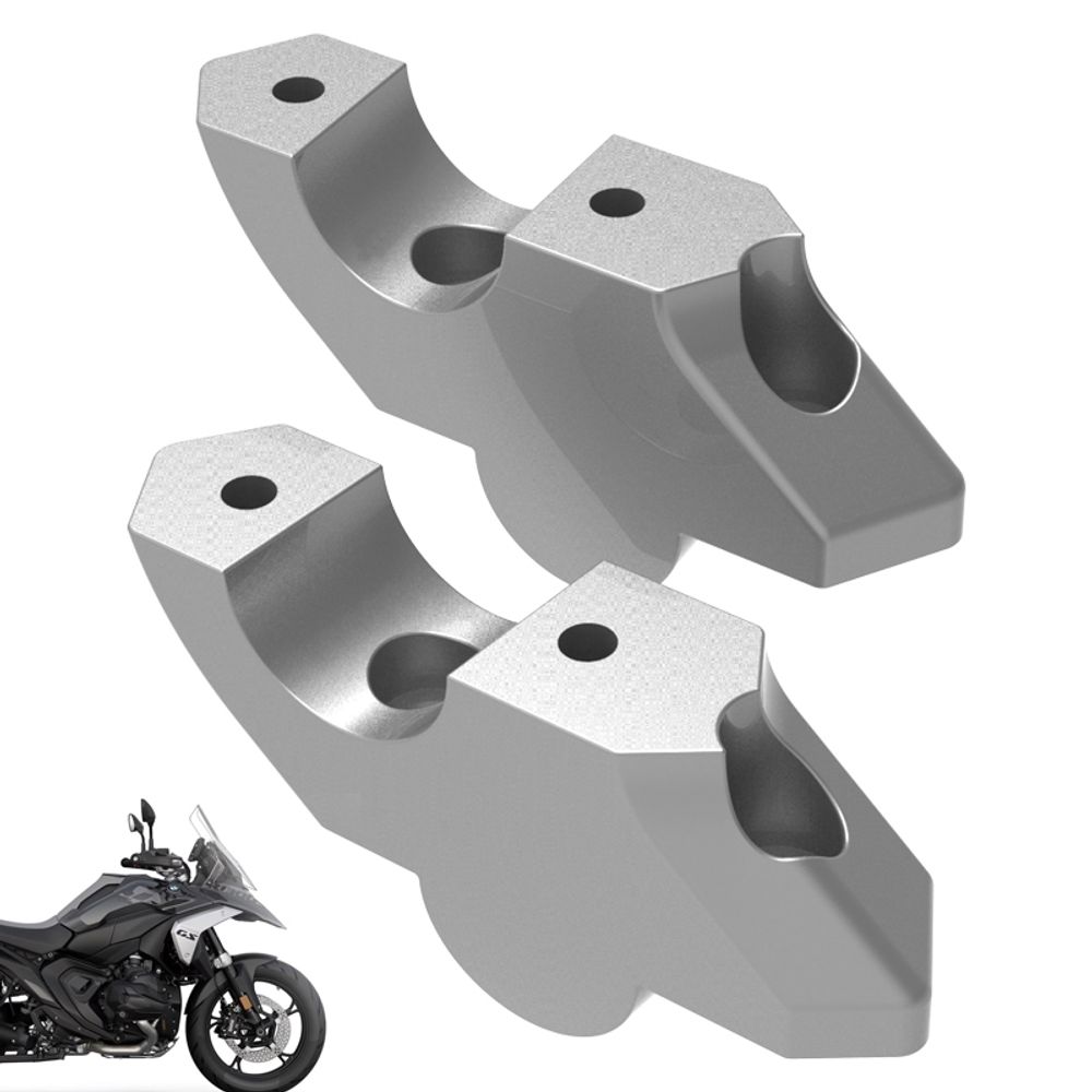 Os Risers Recuados para a Bmw R1300 Gs S?Ao Fabricados em Aluminio Injetado, com Design e Acabamento Que Se Harmonizam Perfeitamente com a Moto. Os Acessorios Foram Projetados para Ajustar a Posicao do Guidao Proporcionando Um Recuo de 25mm e Uma Elevacao de 35mm.